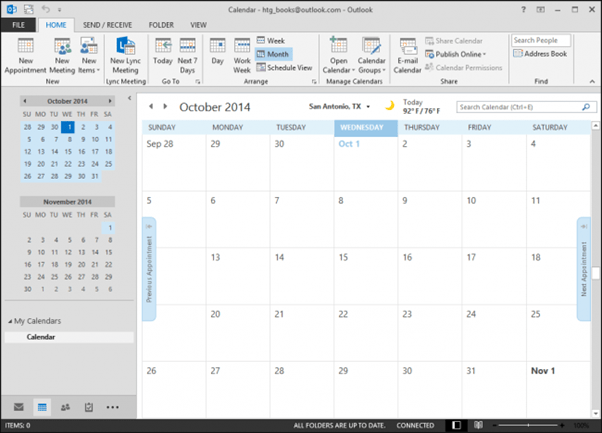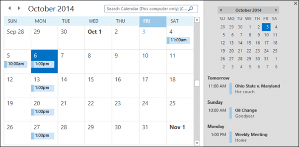 Whenever you use Outlook, you’ll have its calendaring capabilities at your disposal. Even if you don’t have an email account set up, you can still use Outlook for the rest of its features. The calendar works best, however, if you can take advantage of its collaborative capabilities, so using an email account assures you’re able to send meeting invites and receive attendee notifications.