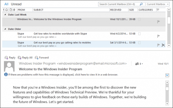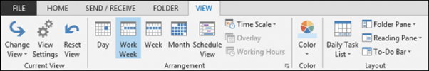 It’s a good idea to play around with the View tab in each mode because they’ll not all be exactly the same. For example, the Reading Pane isn’t much use in the calendar view, but it’s definitely a great addition to you inbox.