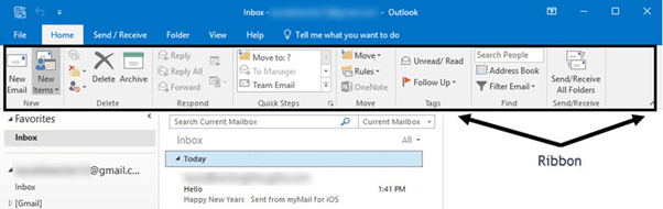 The Microsoft Outlook Ribbon appears above your inbox.