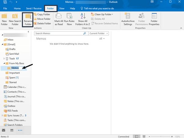 In this example, I created a folder called Memos and placed it under the From My Boss folder. Here’s what the folders look like now: