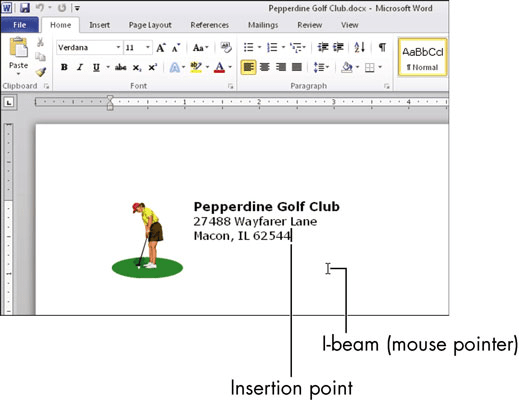 In Word moving the insertion point past the end of the document is not allowed, therefore if you want the insertion point in the center of the document, you will for example have to press Enter to create extra blank paragraphs until it reaches where you want. The convenient way to do this is to double click where you want your insertion point to be. If it’s the end of a document, the insertion point will move there, and the end of the document moves down past the new location.