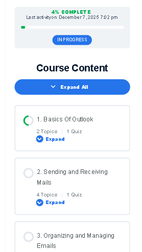 When you open a course, the first thing you’ll see is an overview that shows the lessons included and your overall progress. The progress bar at the top of the course page updates automatically each time you complete a topic or pass an exam. This helps you understand how far you’ve come and how much more you still need to complete.