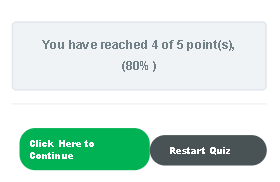 The option to move forward will only become available upon scoring 80% or more. When a quiz is failed you will instead be shown a “retry button”.